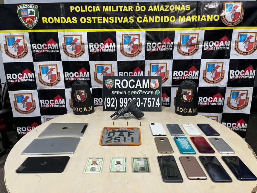 Além disso, o suspeito conduziu os policiais até uma segunda residência, onde foi encontrada a arma de fogo furtada em um dos crimes — uma pistola Taurus PT57 calibre 7.65mm com três munições intactas.