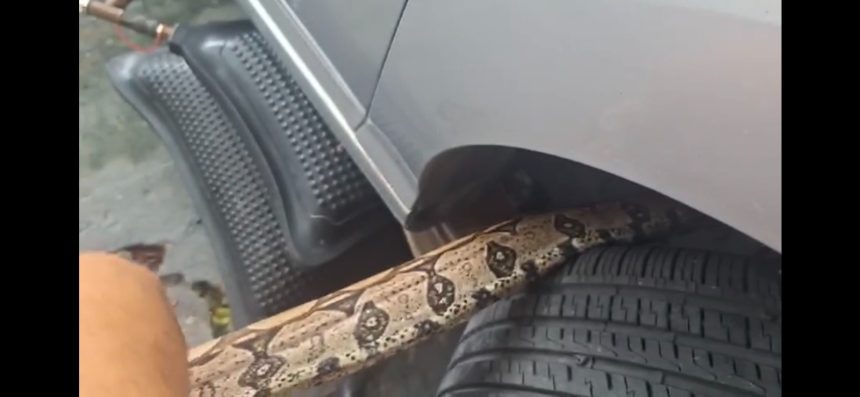 O Corpo de Bombeiros Militar do Amazonas (CBMAM) foi acionado, na manhĆ£ deste domingo (09/02), para capturar uma jiboia que estava no motor de um veĆculo no bairro Mauazinho, zona leste da capital.