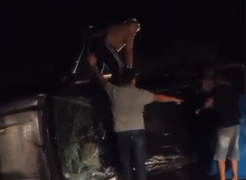 Um vídeo compartilhado nas redes sociais mostra o momento em que outros motoristas que trafegavam pela rodovia ajudam a resgatar o homem de dentro do veículo. Apesar do impacto, ele não sofreu ferimentos graves.
