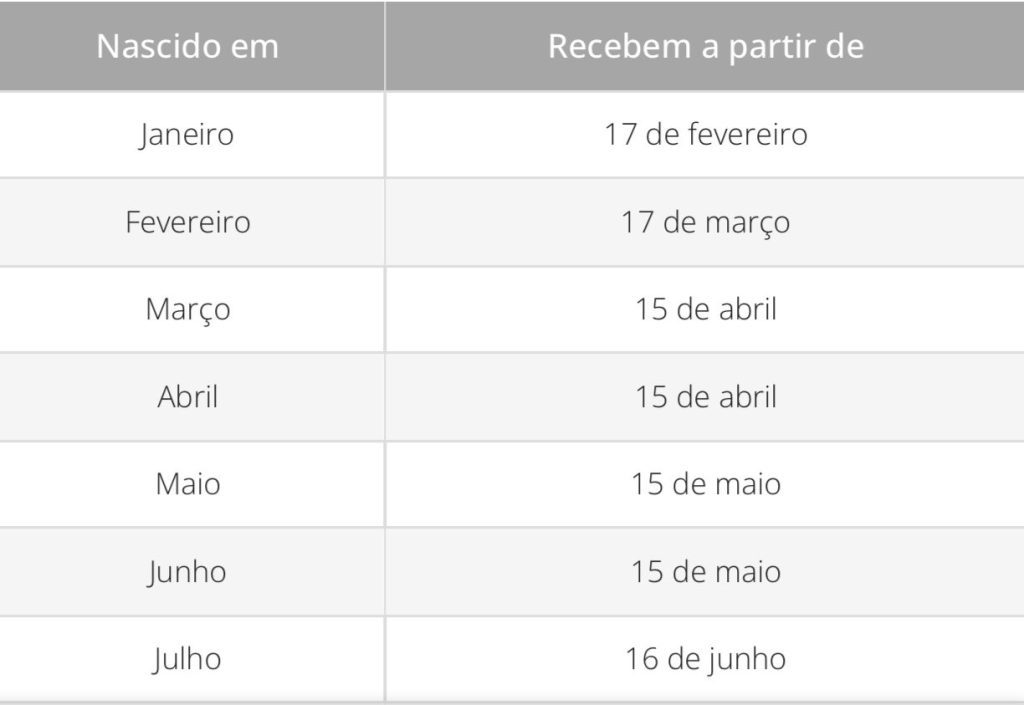 Ao longo de 2025, os pagamentos ocorreram de forma escalonada. Em abril, receberam os nascidos em março e abril; em maio, os de maio e junho; e no mês anterior, os de setembro e outubro. Com a liberação para os nascidos em novembro e dezembro, o ciclo de pagamentos é encerrado.