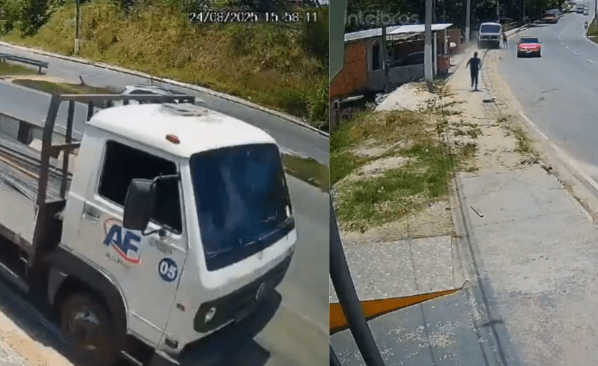Câmeras de segurança registraram toda a cena, mostrando a velocidade com que o caminhão avançou e os riscos que o acidente trouxe aos moradores da região. O barulho da colisão assustou quem estava nas proximidades e fez vizinhos correrem para tentar ajudar. O local já é conhecido por ocorrências semelhantes: há cerca de um ano, outra carreta atingiu uma casa na mesma área.
