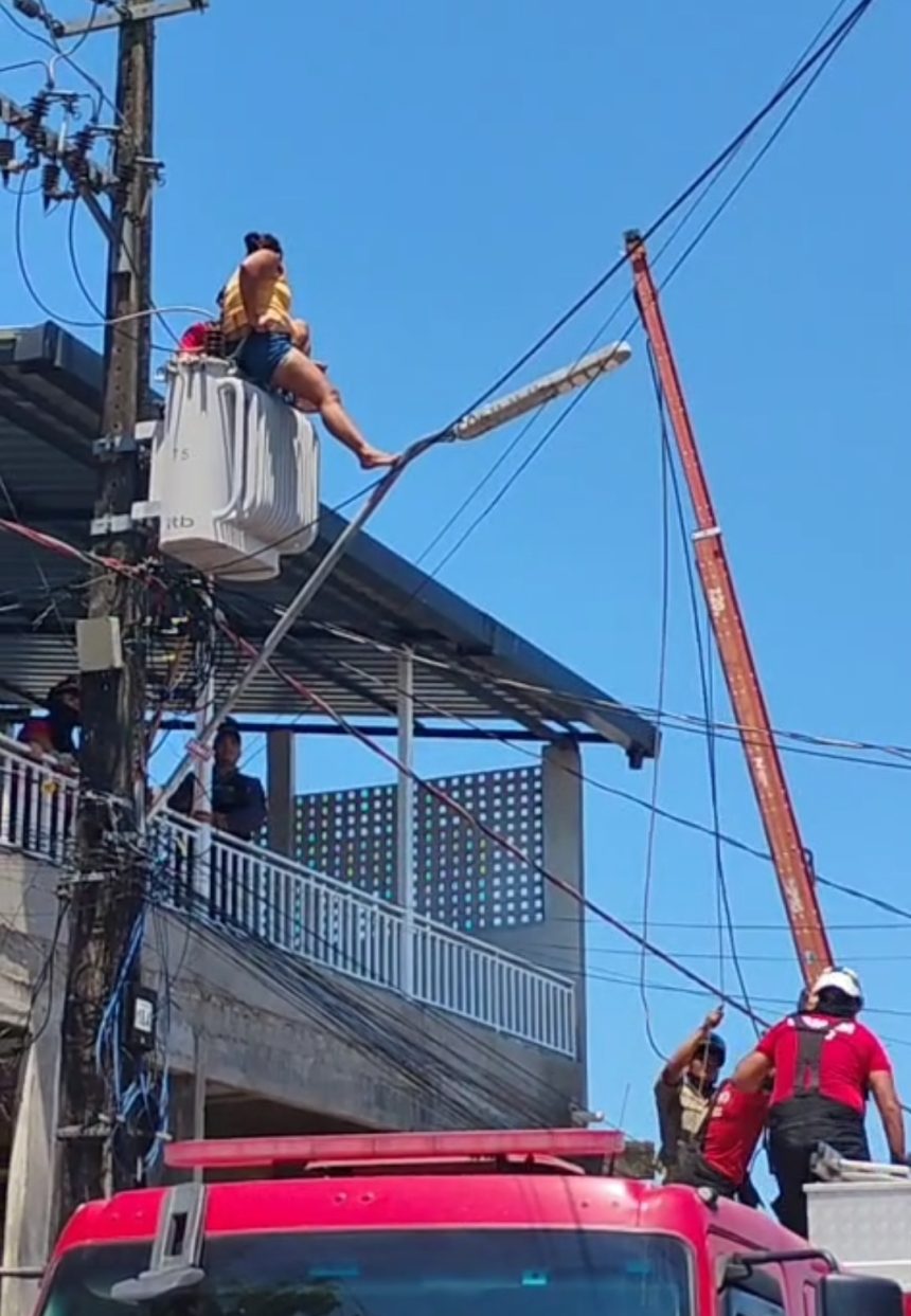 Segundo relatos de vizinhos, a mulher iniciou um surto e escalou um poste de energia elétrica. Em seguida, ela alcançou a estrutura do transformador e passou a ameaçar se jogar, gerando apreensão entre pedestres e moradores que acompanhavam a cena.