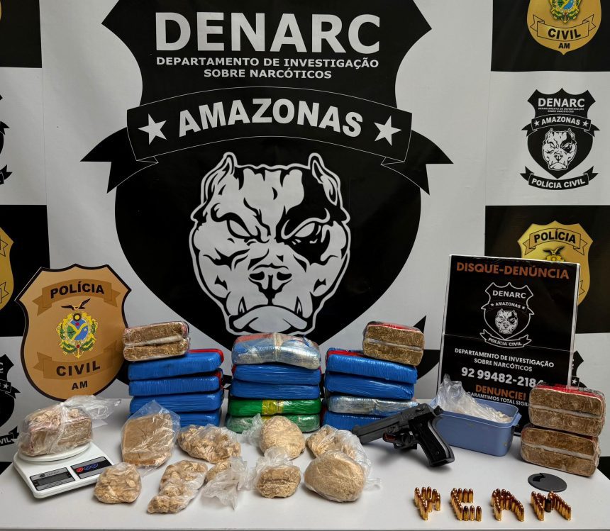 A Polícia Civil do Amazonas (PC-AM), por meio do Departamento de Investigação sobre Narcóticos (Denarc), apresentou nesta segunda-feira (1º/09) a prisão em flagrante de um homem de 35 anos, suspeito de atuar na distribuição de entorpecentes em Manaus. Com ele, foram apreendidos cerca de 20 quilos de pasta base de cocaína, avaliados em aproximadamente R$ 1,5 milhão, além de uma arma de fogo, munições e três veículos.