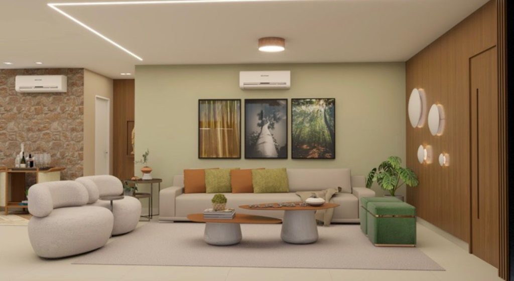 Em residências, o Design Biofílico promove conforto emocional, reduz a sobrecarga sensorial e melhora a qualidade do sono. “Um quarto biofílico, por exemplo, pode reduzir ansiedade e melhorar a profundidade do sono. Uma sala biofílica aproxima a família. Uma cozinha biofílica incentiva hábitos mais saudáveis”, explica.