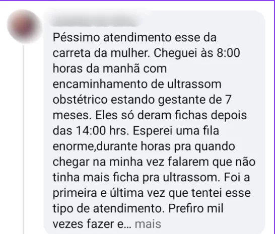 “Na televisão eles dizem que a carreta é para facilitar o atendimento na saúde da mulher, mas na hora que a gente chega no local é só humilhação. As informações são passadas em cima da hora e ninguém ajuda a gente”, disse.