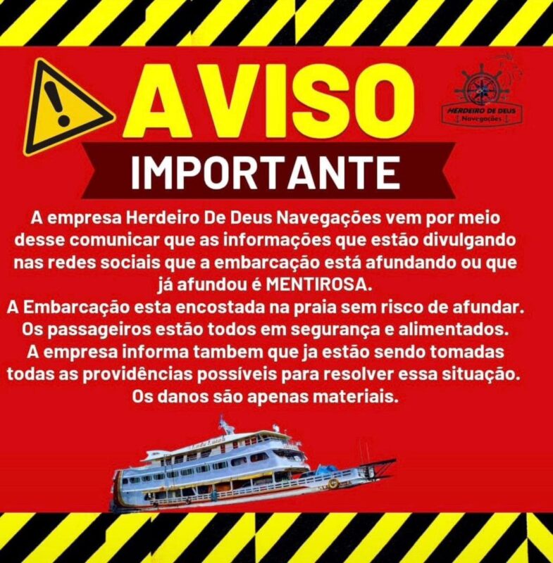 A empresa responsável pela operação informou que a embarcação não apresenta risco de afundamento e que a situação está sob controle. Ainda segundo a empresa, estão sendo adotadas medidas para a retirada do ferry e avaliação das condições estruturais.