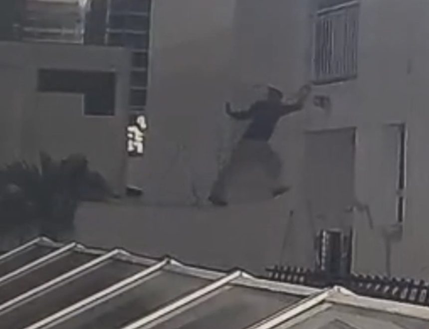 Imagens de câmera de monitoramento registram momento em que homem escala um apartamento no Itaim Bibi, na Zona Oeste de São Paulo, no último sábado (07/03). O caso chamou atenção pela forma usada para acessar o imóvel.