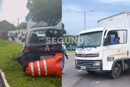 Caminhão perde freio e atinge veÃculo na barreira de fiscalização da AM-010