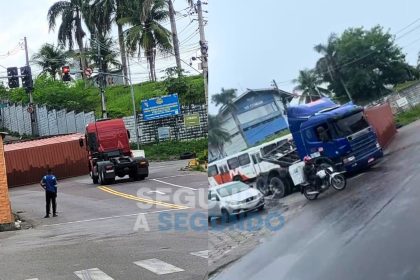 Carreta container tomba e bloqueia trânsito na zona sul de Manaus