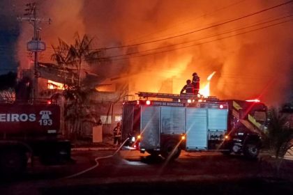 Incêndio de grande proporção destroi galpão de empresa no Tarumã