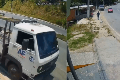 Caminhão desgovernado atinge veículos e quase destrói casa de idosa na Avenida do Turismo