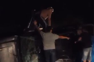 Motorista capota picape na BR-174; vídeo mostra resgate