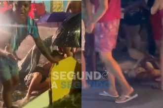 SAMU demora e mulher aguarda socorro no chão de rua alagada no Alvorada