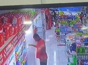 Câmeras mostram homem furtando farmácia na Cidade Nova