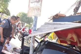 Motorista embriagado destrói parada de ônibus e é detido no Nova Cidade